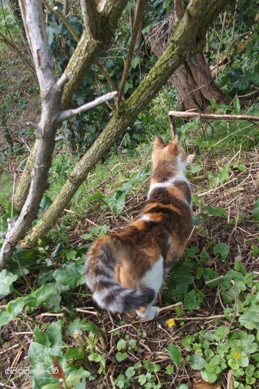 Pas de grandes balades depuis mardi, je reste sur notre terrain, trafiquant de-ci de-là… à la recherche des fleurs de printemps, vont-elles revenir ? le gel de cet hiver les a-t-elles fait disparaître ? quels arbres faudra-t-il supprimer, à cause des tempêtes ? je regarde, je me promène, accompagnée bien sûr de Flipelette ! Dernièrement, dans un coin de notre « jungle » campagnarde, elle était très attentive. L’écureuil était-il près de nous ? ou le gros chat des voisins rôdait-il dans le coin ? moi, je n’ai rien vu…