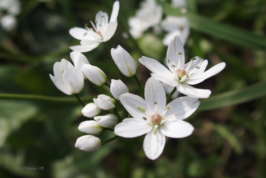 Au fond du terrain, l’ail de Naples (allium napolitanum, si je me souviens bien) se multiplient. Depuis 3 ans ces « sauvages » tout en délicatesse se sont installées là, venues comment ? mystère ! Mais j’aime bien les retrouver.