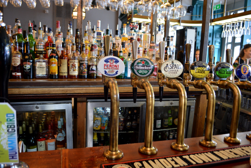 Bon, d’accord, il y avait plein de marches à grimper pour aller dormir, et en fin de journée, après les balades que Luce nous avait préparées, je sentais que le genou allait un peu rouscailler ! Mais non, tout s’est bien passé, il suffisait de ne pas oublier un truc là-haut le matin… Bon, pensez-vous, ces visites, on y va ? Oui, oui. D’abord, un tour du quartier, Islington (enfin, un petit coin de), histoire de voir où nous avons atterri. C’est vendredi soir, alors les trottoirs devant les pubs sur Exmouth Market débordent, il fait si beau ! Repérage des magasins indispensables, des arrêts de bus.