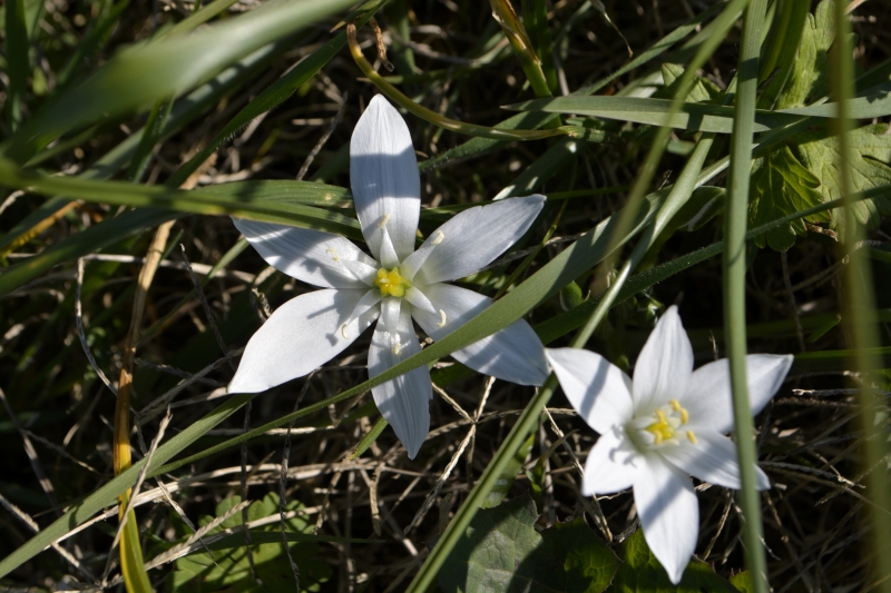 Dans l’herbe du terre-plein, sur notre place du Puits Clos, les dames de 11 heures – ornithogalum umbelletum – ouvrent leurs pétales au soleil (mais je n’ai pas encore compris si elles vivaient à l’heure solaire ou européenne 😉 ) avant de les refermer dès qu’elles se retrouvent à l’ombre. En tout cas, merci à Jérôme, un des employés communaux, de les avoir épargnées lorsqu’il est venu tondre ! C’est que je les aime bien ces jolies fleurs, et j’attends leur retour avec impatience… je vais essayer d’en récupérer pour le jardin, j’ai vu qu’il y en avait cette année sur les talus le long des chemins. (désolée pour le flou de la dernière photo, il y a un peu de vent, cette fin d’après-midi)