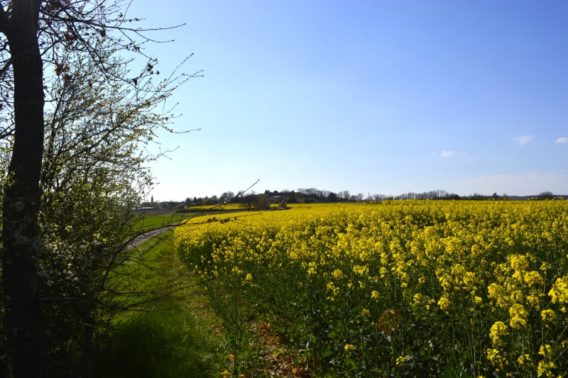 Toute petite balade, à peine plus d’une heure ! A Galembrun. Avec le soleil. Les jardins ne sont pas encore très fleuris, les iris fanent déjà, les aubépines sortent leurs feuilles et enneigent l’herbe, sur « la plaine » les champs de colza rivalisent avec le soleil, alors que vers les coteaux cette année c’est le vert vif des champs de blé qui domine, dans les bois autour de Galembrun quelques taches vertes commencent à réveiller les arbres, et les grenouilles chantent du matin au soir dans la petite mare.