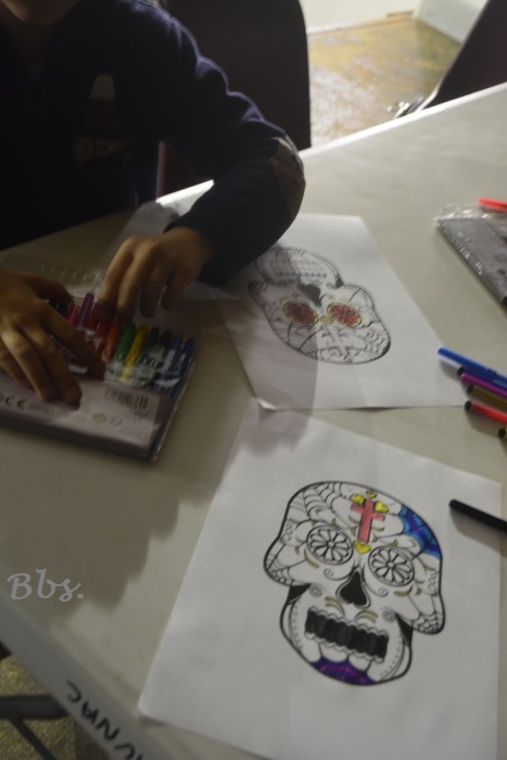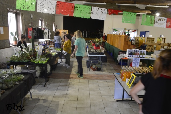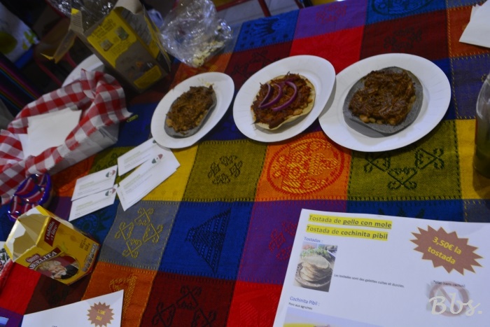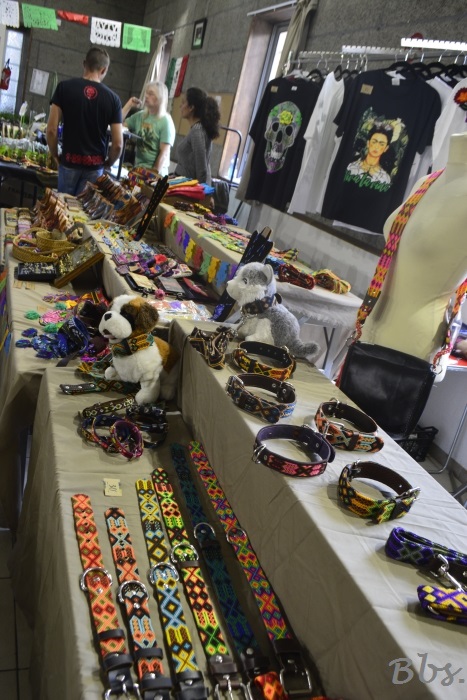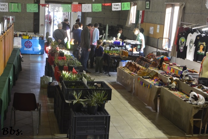 Dans la salle, des cactus en veux-tu en voilà, des produits autour du nopal, les graines Kokopelli ( https://kokopelli-semences.fr/fr/ ), des produits alimentaires mexicains, un coin cuisine – restaurant, sur l’estrade un coin où les enfants pouvaient dessiner ou colorer les têtes de la fête des Morts (et oui, c’est l’époque, tout comme chez nous. Finalement, la fête des morts est un rituel pratiqué dans de nombreuses cultures et religions, qui consacrent souvent un ou plusieurs jours fériés à la commémoration des défunts, où que l’on soit… ), des produits artisanaux superbes, colorés et de qualité (Riou Artesania, sur FB)… et même un stand d’huîtres et vins du coin proposé par le petit magasin « Chez Nine » !