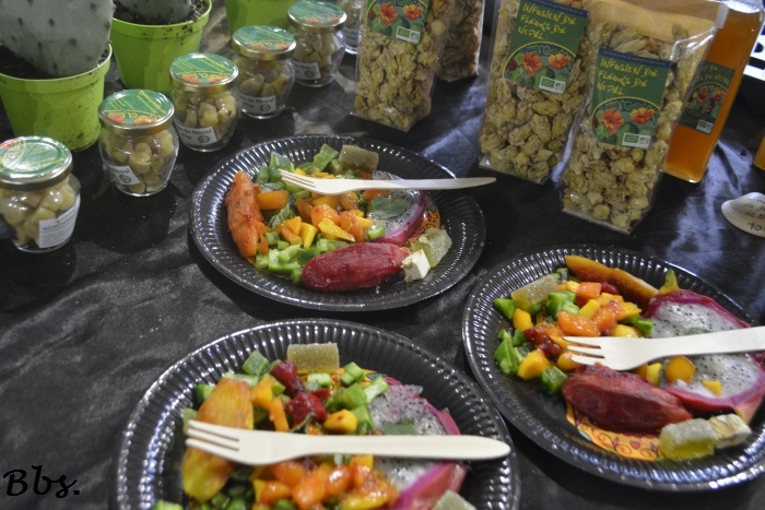 D’abord, qu’est-ce que le Nopal ? Tout simplement la figue de Barbarie…. ces morceaux rouges, dans l’assiette de dessert proposée sur le stand de KAJUARD ( https://kajuard-plantes.com/ ), l’organisateur de ces festivités.