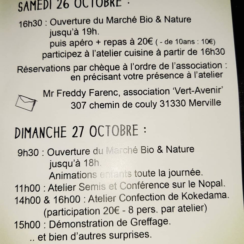 Parmi les animations proposées, dont je mets le programme récupéré sur la page FB de Kajuard, une conférence sur le nopal, par un professeur, qui nous a raconté toutes les vertus et tous les bienfaits de cette plante, études à l’appui. J’ai commencé à tester aujourd’hui la poudre de cladodes de nopal… ben, ça a intérêt à être efficace, parce que ce n’est pas terrible terrible à avaler 😉 !