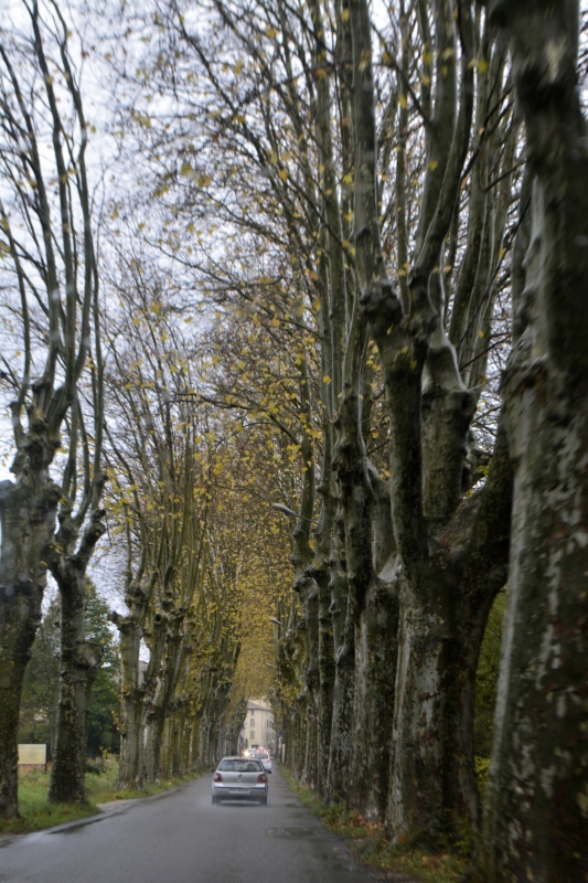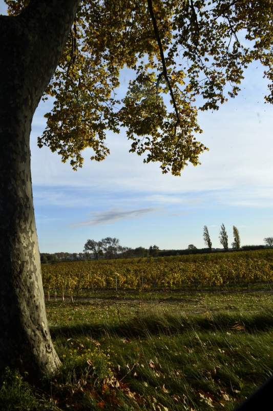 Jeudi matin, départ pour Blacé, chez les amis du Beaujolais. Nous avons pris le chemin des écoliers, ou plutôt la route impériale pour commencer… un vrai régal. En plus, notre « Cocotte » (surnom du GPS) nous a fait prendre des petites routes (on se demandait parfois si elle n’était pas perdue et nous avec…), bordées d’arbres aux couleurs magnifiques (non, désolée, pas de photos, j’ai simplement regardé, et c’était bien beau). Nous avons roulé entre des champs enneigés, puis presque sous le soleil, montagnes blanches en fond, villages dans la plaine…