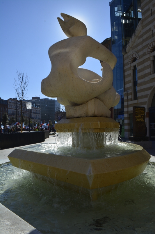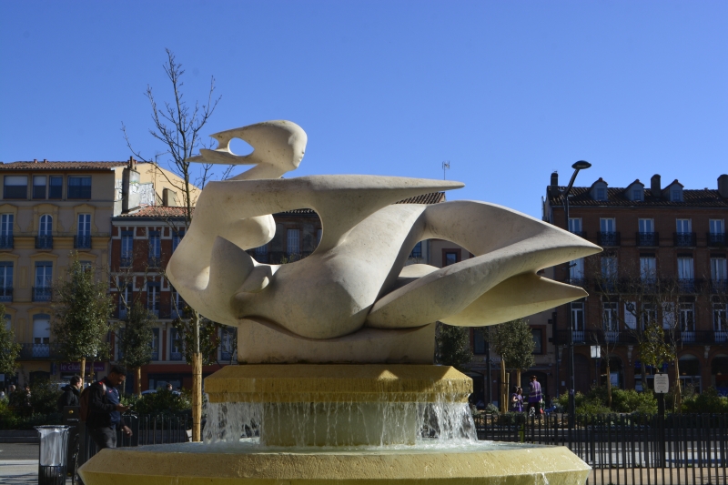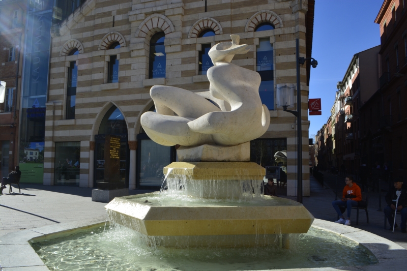 Partant de ce que certains osent appeler « les ramblas toulousaines »… (je peux vous dire que ce n’est pas vraiment comme à Barcelone, même si ces allées Jean Jaurès sont devenues plutôt agréables 😉 ), nous avions rendez-vous sur la place d’Arménie. J’aime beaucoup la façade de l’ex-église, dommage qu’elle soit squattée par une banque… mais sous le soleil, la fontaine était très belle.