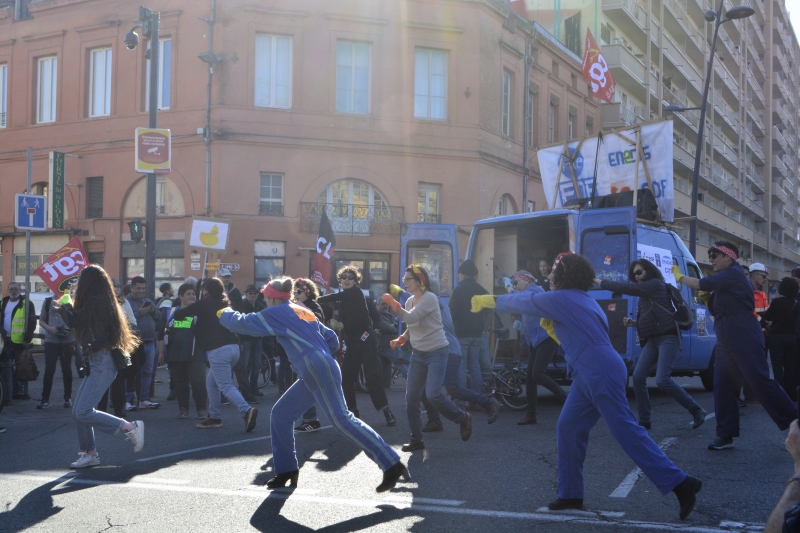 Et puis nous avons suivi les camarades, retrouvé Claire, fidèle au poste, continué jusqu’à Arnaud-Bernard, où « Rosie la riveteuse » et ses copines ont une fois de plus chanté et dansé « à cause de Macron », applaudies chaleureusement… tiens, d’ailleurs, voici un lien « l’appel des petites connes », que je vous invite à signer : https://france.attac.org/se-mobiliser/reforme-des-retraites/article/l-appel-des-petites-connes
