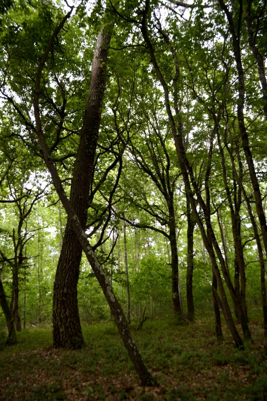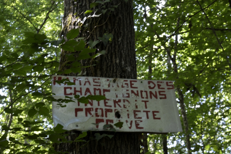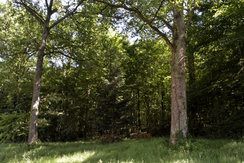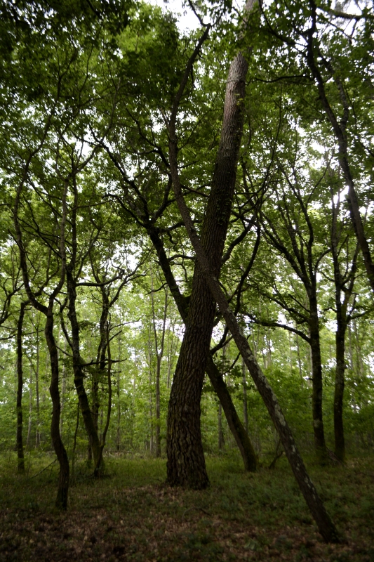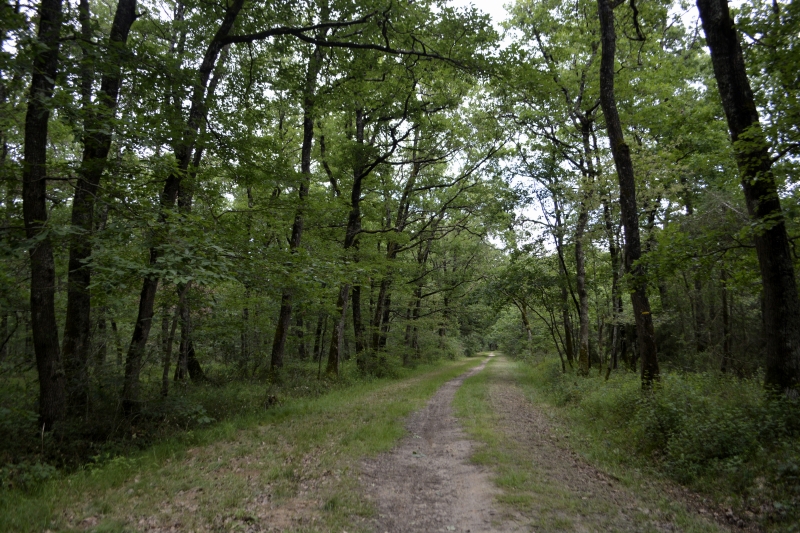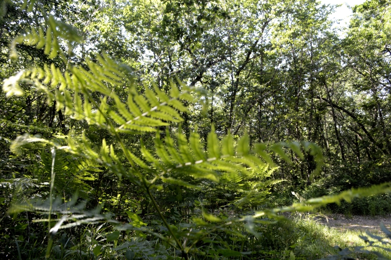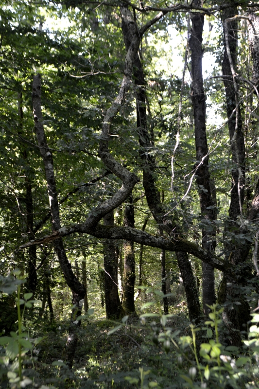 Mais une fois passée la ferme « du Poutou », c’était plus calme sous les arbres. Large chemin, des arbres qui s’essaient à la géométrie, et un coin de fougères.