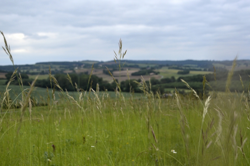 Un tout petit peu de vent, histoire de me faire râler, mais finalement, ce n’est pas trop raté 😉 ! Tant pis si les herbes sont floues, c’est pour que vous sentiez ce petit air frais… en fait, il faut choisir dans ce cas-là, les herbes ou le paysage au fond, j’ai choisi les herbes !