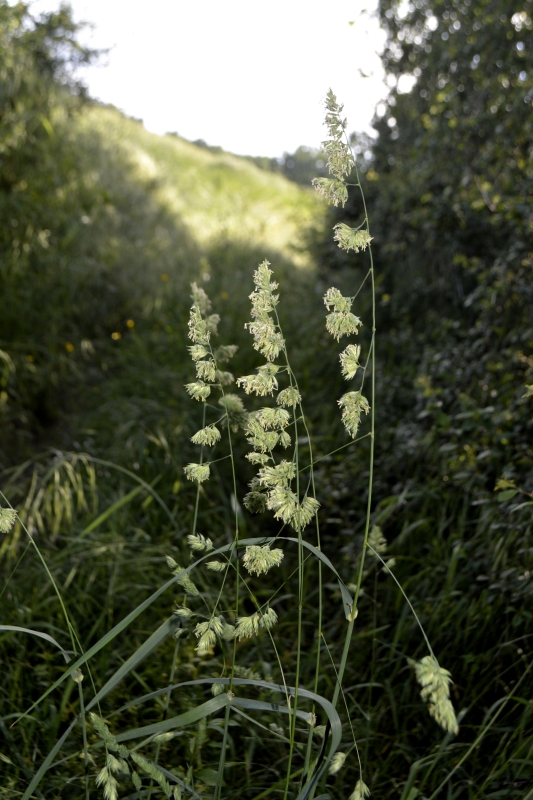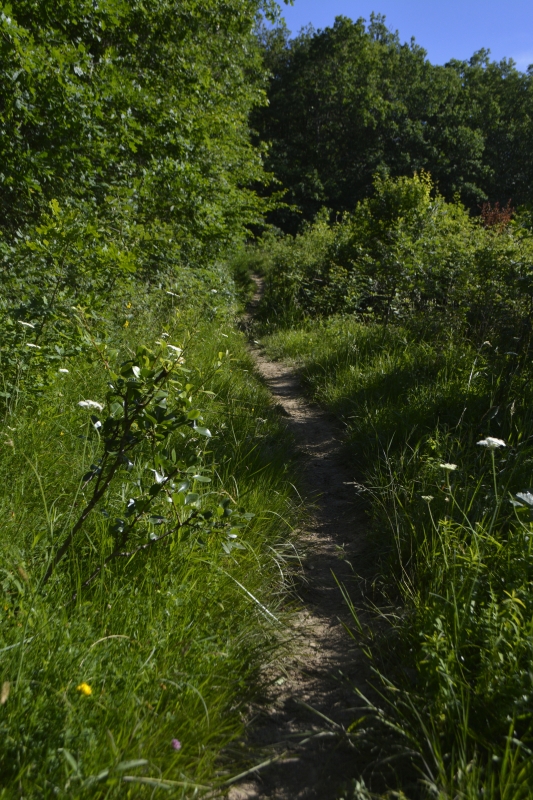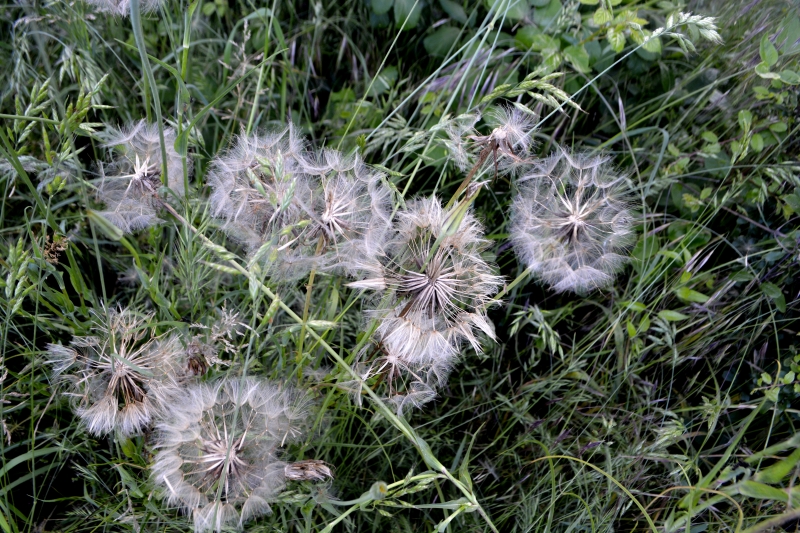 Retour par le sentier « des motocross », peu fréquenté ces temps-ci (ils préfèrent aller dans le bois sur la colline en face de la maison 😦 ), à tel point que par endroits l’herbe m’arrivait plus haut que la taille. Oui, d’accord, je ne suis pas grande, mais quand même ! Graminées de toutes sortes, mais presque plus de fleurs, peut-être étouffées par l’herbe ?