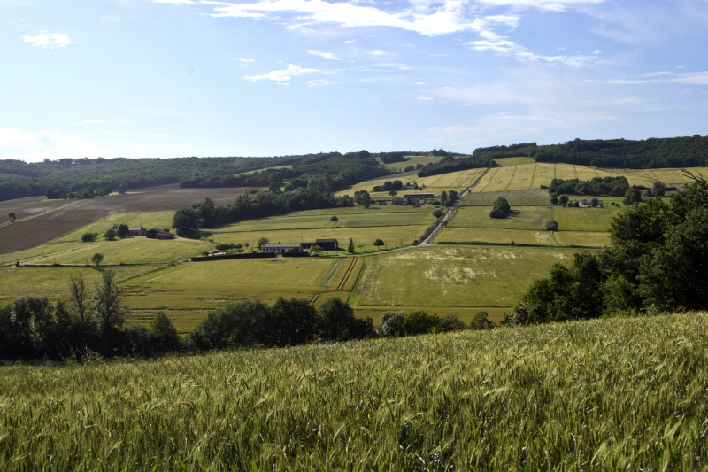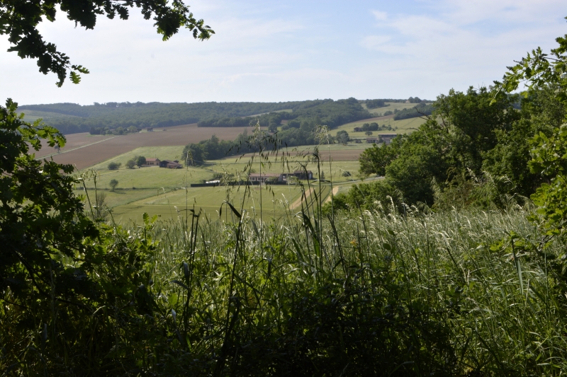 Et nous débouchons à nouveau sur « la plaine », le hameau de Galembrun tout au loin….
