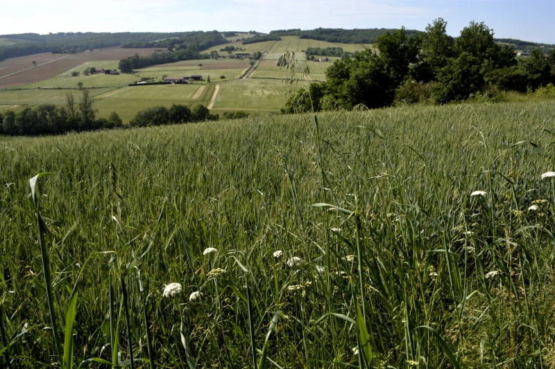 A droite, sur le haut de la colline, Galembrun, caché dans les arbres.