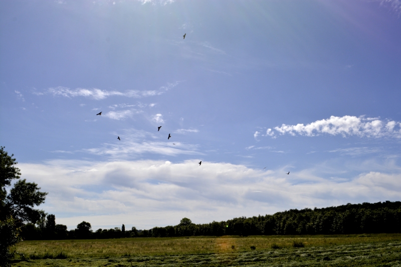 Ce dimanche, longue boucle autour de Galembrun, une belle balade sous le soleil (mais supportable), à un rythme tranquille, pour profiter de l’air, des arbres, des fleurs des champs… Fauchage dans une prairie près du Marguestaud. Des dizaines de rapaces tournaient autour, espérant peut-être se nourrir de quelques lapins ou rats des champs ?