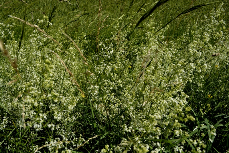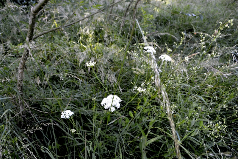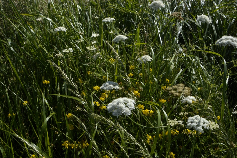 Mais sur les talus le long de la route (sur cette boucle, il y a un peu de route), les fleurs des champs et herbes restent dans les tons de vert et blanc…