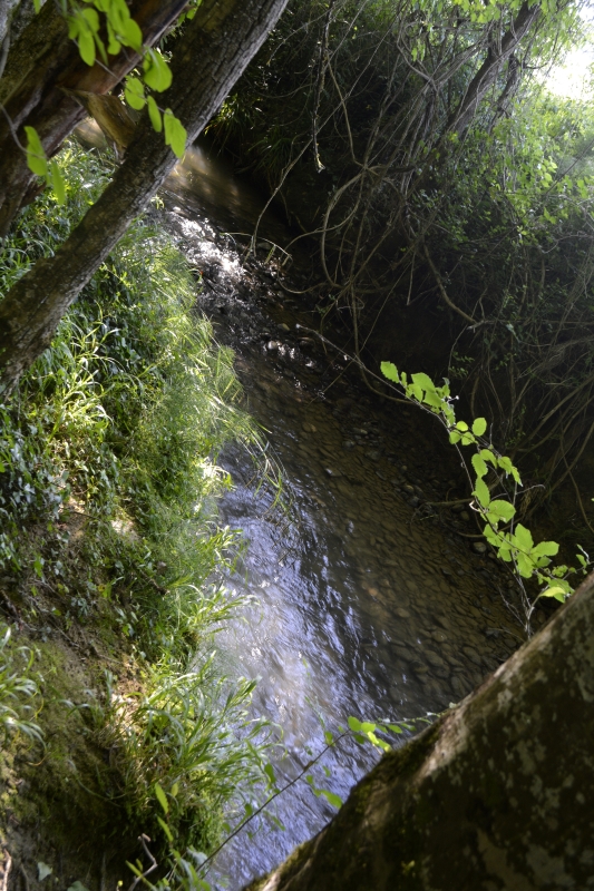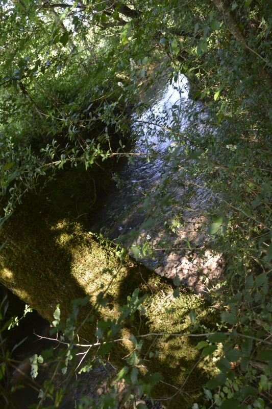 Là, c’est la partie la moins agréable, sur la route. Même si elle ne dessert que deux ou trois petits villages, nous croisons pas mal de voitures en ce dimanche après-midi. Peut-être des visiteurs du parc du Burgaud, Animaparc ( https://www.animaparc.com ) qui n’ont pas pu y entrer à cause de l’actualité sanitaire ? Et je retrouve le chemin qui devrait nous amener au bord du Marguestaud. Le Marguestaud est bien joyeux en ce moment, l’eau coule sur les galets avec un joli bruit… et après un long passage (un peu pénible) au bord d’un champ fraîchement fauché, nous retrouvons le sentier qui nous conduit au gué.