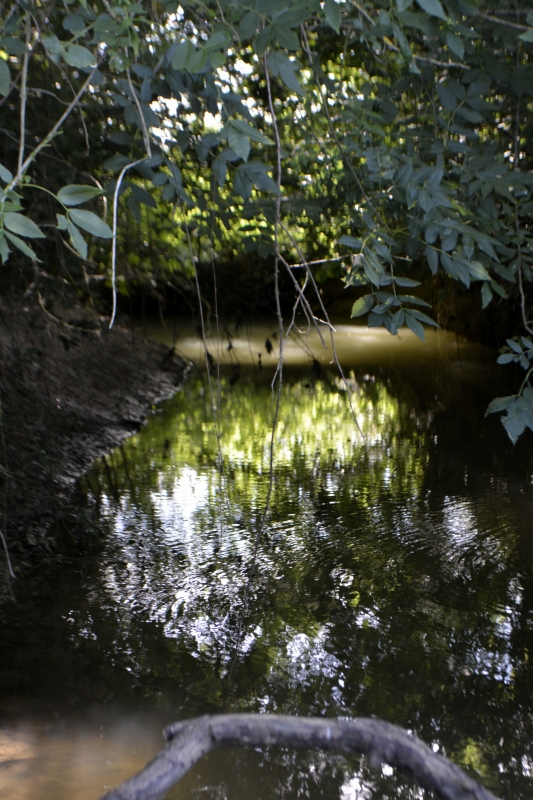 Au gué, les couleurs sont magnifiques, avec ce ciel bleu. Reflets du ciel et des feuillages, que l’on soit face ou dos au soleil, avec peut-être un peu plus de mystère vers « l’amont ».