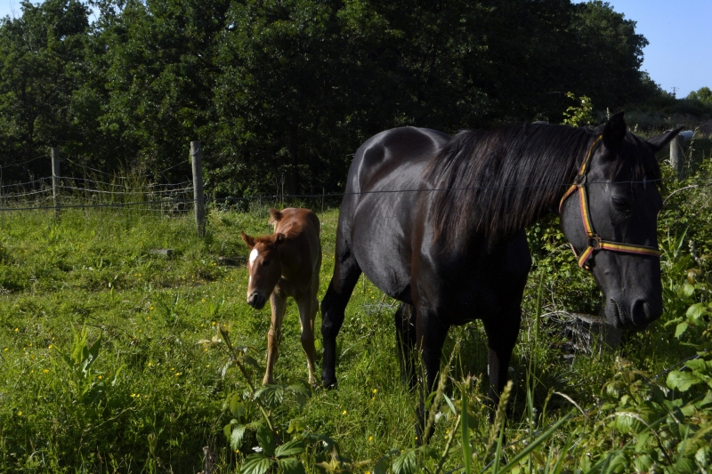 Depuis quelques jours, bruits de tracteurs tout autour de la maison… d’un côté, le voisin coupait l’herbe de son terrain, de l’autre c’était fauchage du grand « champ des voisins », et aujourd’hui, deux balles de foin attendent au fond du champ.