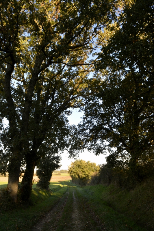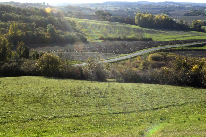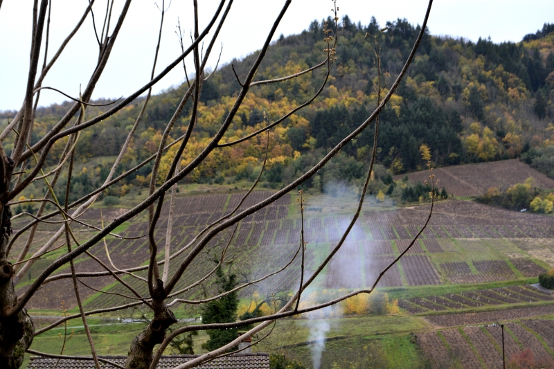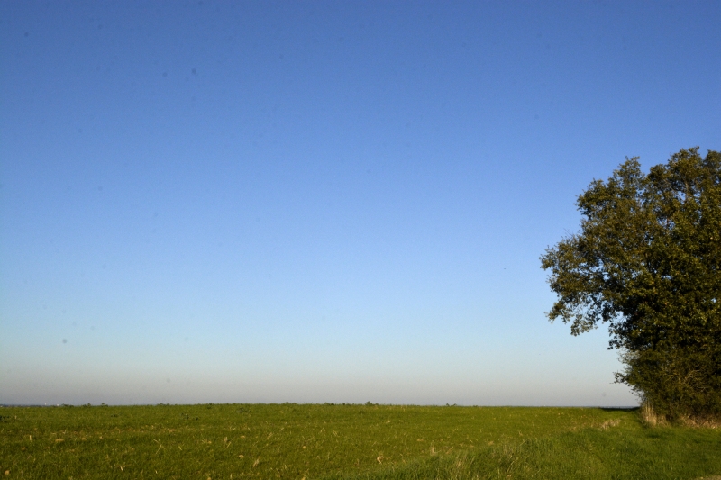 Puis le soleil a dispersé cette brume, la forêt sur la colline a réapparu, un beau ciel bleu s’est installé. Petite marche cet après-midi, très courte, vers « la plaine », entre vert et bleu…