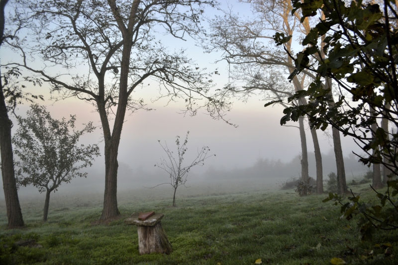 Ce dernier jour d’octobre s’est ouvert sur du blanc… 8 heures, comme isolés dans un monde tout blanc. Et soudain, au fond, la lumière.