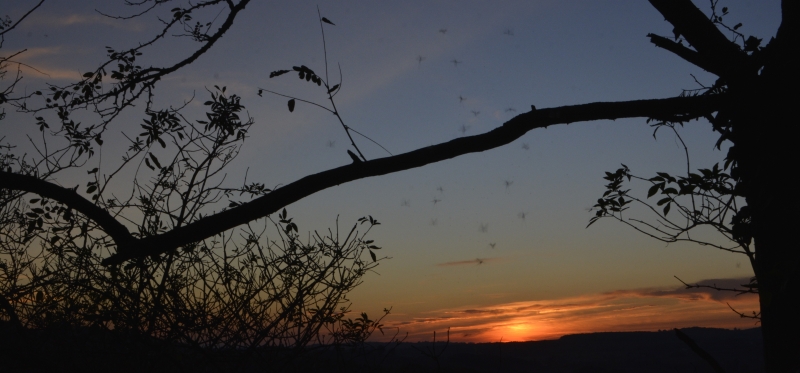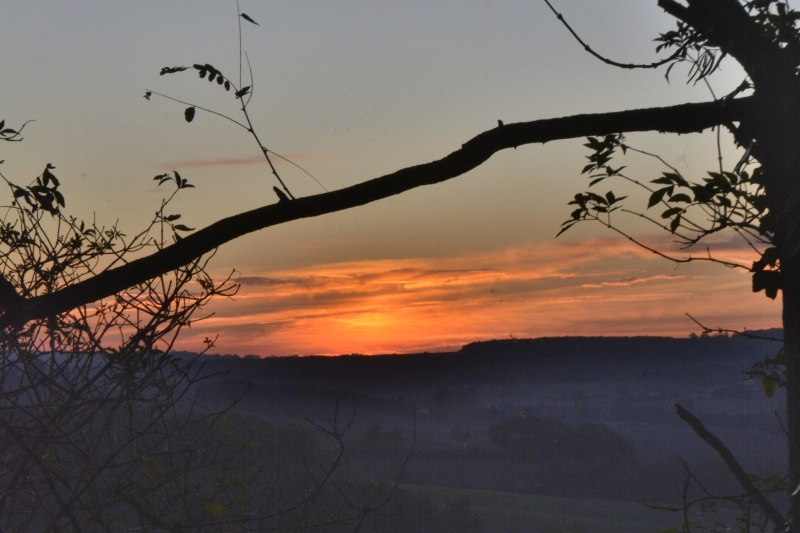 Et ce soir, sublimes couleurs au soleil couchant… la brume commence à voiler le paysage de notre petite vallée, et j’ai eu droit à une danse des moucherons pour fêter l’arrivée de cette nuit particulière 😉