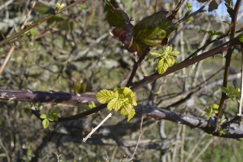 Les haies d’églantiers, encore grises il y a une semaine, commencent maintenant à se couvrir de fleurs.