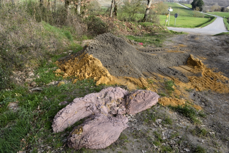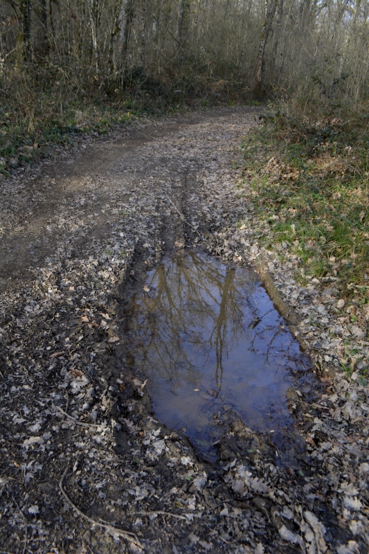 Passage d’un champ à l’autre par une sente probablement tracée grâce aux allées et venues d’animaux sauvages, renards, et chevreuils (à voir les traces laissées par les sabots). Sur le champ, les sentes se croisent, dessinant un lacis de lignes pas vraiment droites… nous laissant le choix de la balade !