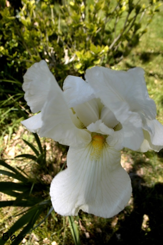 La balade dans les champs est terminée, mais nous avons le temps de faire le tour des fleurs du jardin… Les iris ont enfin daigné s’ouvrir. Ils sont toujours les derniers du village, je ne sais pas pourquoi.