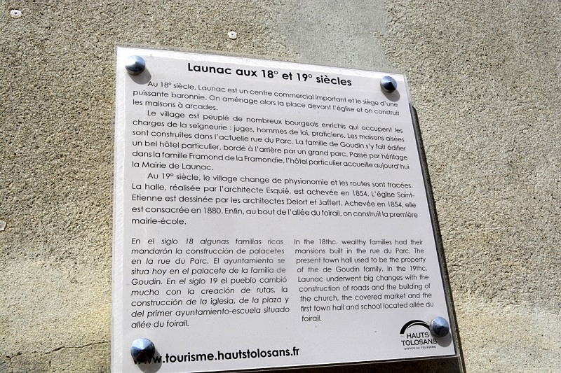 Car Launac a une véritable Histoire, oui, avec un grand H ! Les nouvelles lois ou voies de circulation ont, au fil du temps, écarté ce village des axes principaux, mais il fut une époque où Launac était un centre commercial important… En reculant encore plus dans le temps, il y eut une grande bataille sur la plaine de Launac. Pour davantage de précisions,un article avec des textes de Michel Comby, historien local, dans ce blog : http://unmondedimage.canalblog.com/archives/2021/02/05/38786758.html . Gaston Phaebus, le Prince Noir, ont logé dans le château alors château-fort. Mais pour le château et ce qu’on connait de son histoire, suivez le lien : https://bborda-silvand.blog/2014/09/21/coup-de-coeur-a-launac/ , et revenons au présent ! Bien sûr, comme tout vrai village, vous trouverez une Mairie (dans ce qui fut un hôtel particulier), une halle, une ancienne école reconvertie en maison des associations, une école, une église (fermée, hélas, en semaine) et, puisque nous sommes à la limite du Gers, des couverts près de l’église…