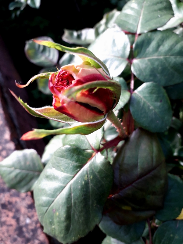 Et le bouton de rose a fini par s’ouvrir, malgré la fraîcheur… un mois à se préparer, je pense au Petit Prince et sa rose…