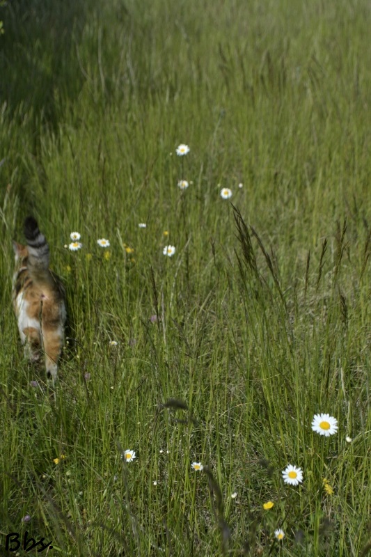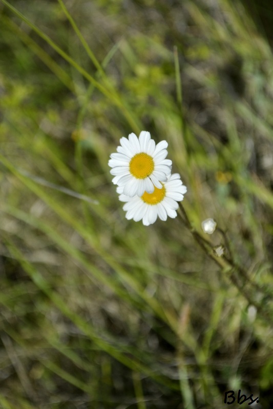 Difficiles à saisir, mais j’ai presque réussi ! Donc, peu de fleurs, mais tout de même quelques marguerites. Pas assez pour faire un bouquet des champs, j’ai préféré les laisser aux abeilles et autres insectes !