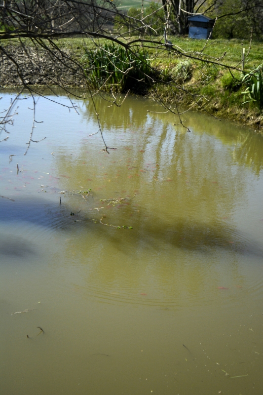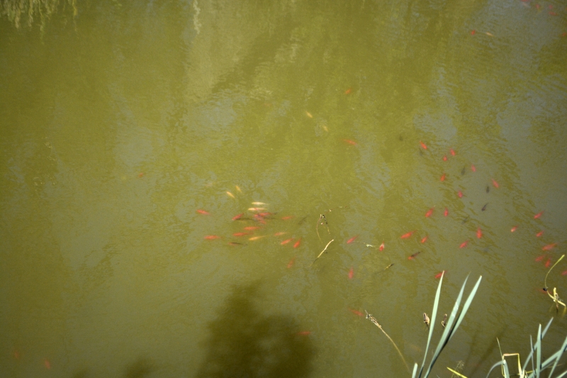 Dans la petite mare, les poissons rouges se multiplient joyeusement… et il paraît qu’un habitué vient y cantiner, un héron, histoire de réguler un peu tout ça 😉 . Mais quand nous sommes passées, nous n’avons vu que les poissons !