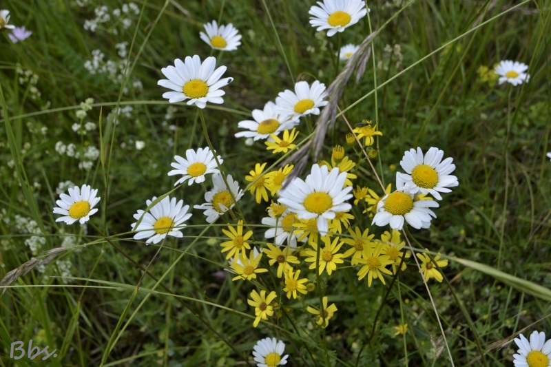 Blanc et or, jaune, mauve, taches vives au milieu des herbes…