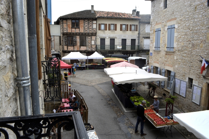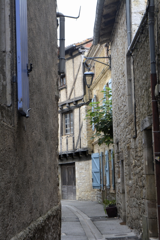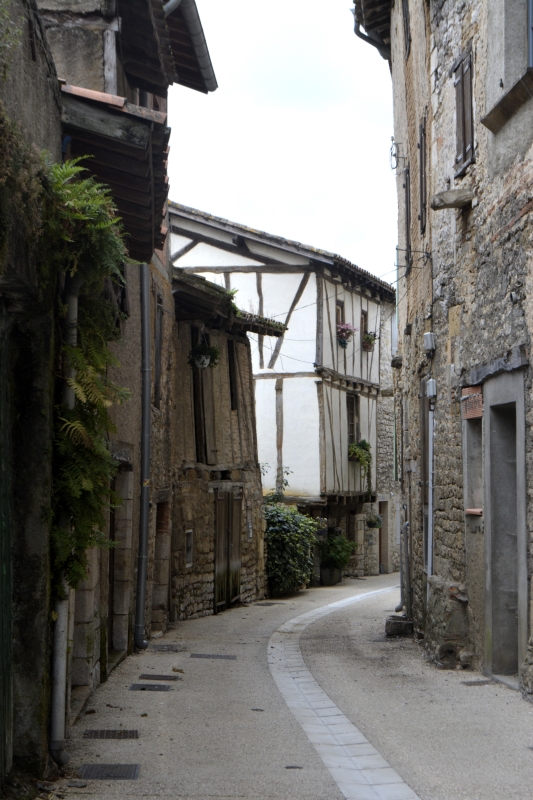 Découverte du village de Montricoux, où nous avons passé la nuit au « chat qui dort », chambre d’hôtes en plein cœur du village, sur la Grand’rue. Accueil sympa, belle chambre, dans une ancienne maison complètement rénovée. Le village est perché sur une colline, l’Aveyron passe tout en bas. Ruelles, maisons à pans de bois, vieilles pierres, un château, sur les bords de l’Aveyron un moulin. Pour l’Histoire, sachez que ce site était déjà habité à l’époque paléolithique, les Cadurques l’ont habité à l’époque Gauloise, les Templiers y sont passé et ont bâti une commanderie, un donjon, un château, les guerres de religion puis la révolution ont détruit un peu tout, bref, de « Mormacus » puis Mons-Riculfi qui deviendra en langue d’oc Mont-Ricolf et plus tard Mont-Ricos qui veut dire : Mont rude, âpre (Monricos), nous arrivons au nom actuel, Montricoux. Attention, nous sommes dans le Sud où toutes les lettres se prononcent, mais pas ici, surtout pas de « t » quand vous parlez de ce village, c’est Mon(t)ricoux !