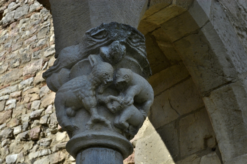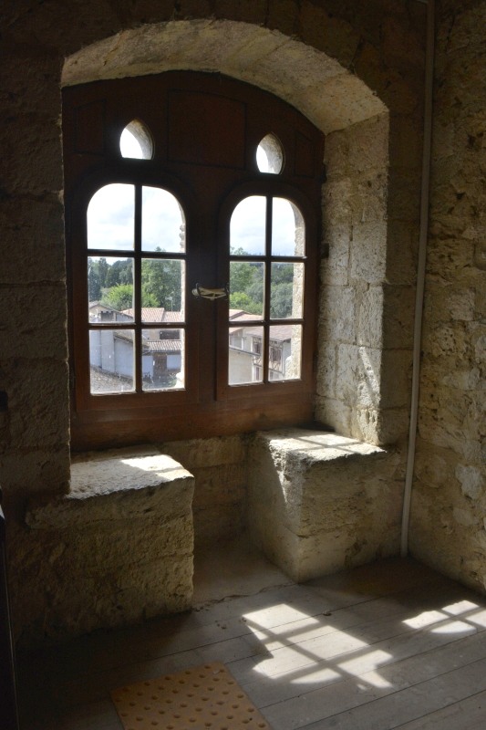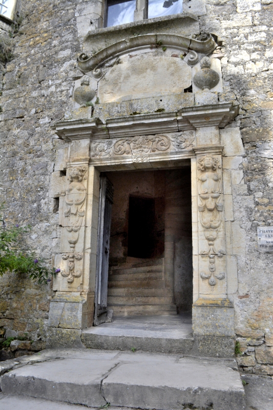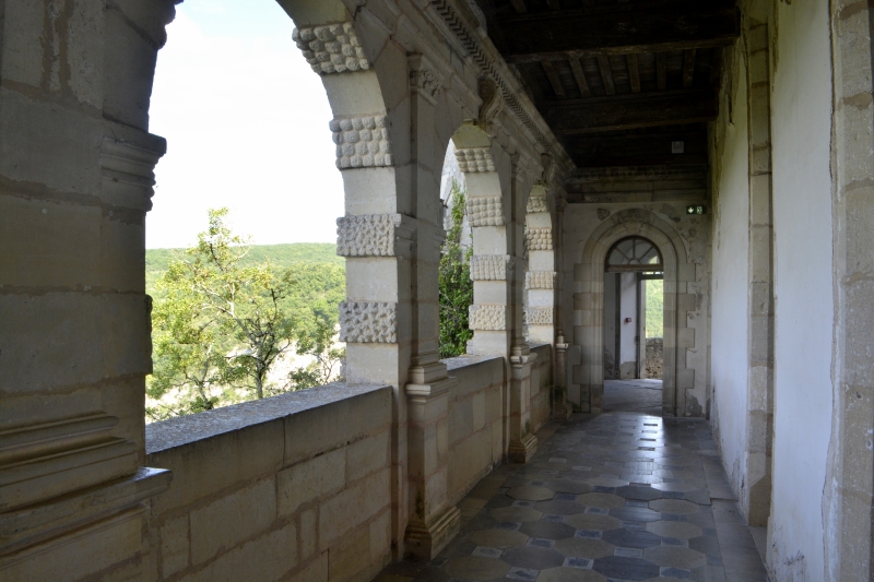 Et donc les châteaux. Ils sont « posés » sur un rocher, à 90 mètres au-dessus de l’Aveyron. Le donjon, la galerie Renaissance avec une vue époustouflante sur la rivière tout en bas, la cheminée en bois sculpté de la salle d’apparat, les chapiteaux de la salle des chevaliers (remaniés au début du XXème siècle), la porte d’entrée du Château Jeune, la petite tour d’angle de l’entrée du Château Vieux et son entourage de jasmin (dommage, la vieille cuisine était fermée), les vieux escaliers…