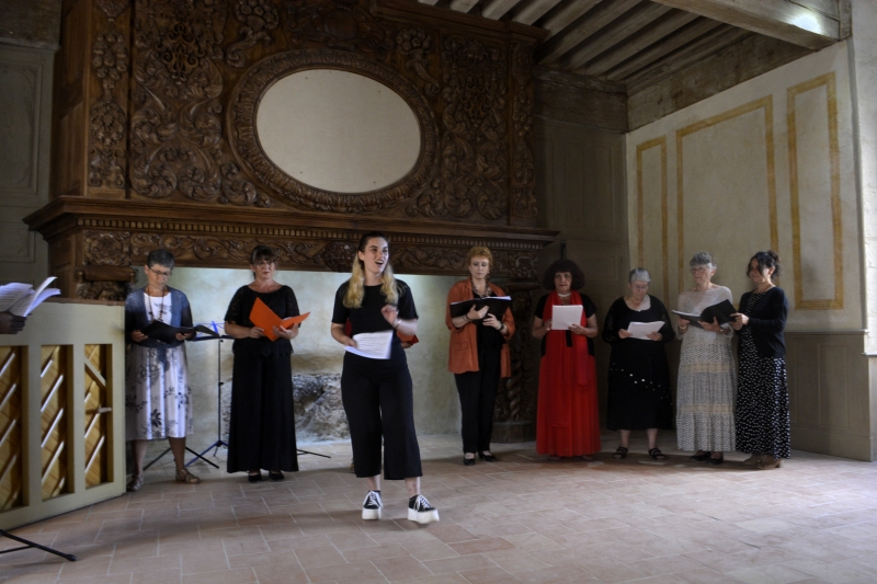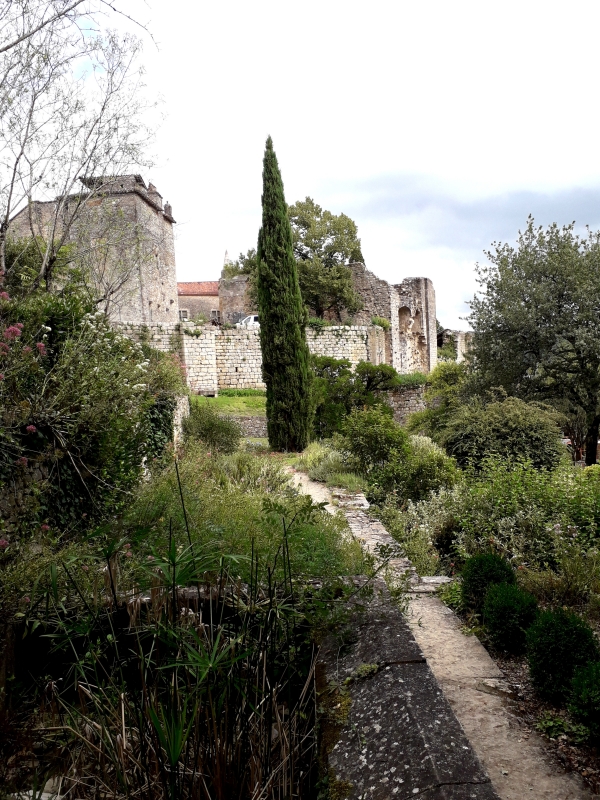 Et les châteaux ? Ah bien sûr, nous y allons. Le stage de chant (lyrique) ayant lieu là-haut, ainsi que les spectacles du festival Offenbach (25ème édition cette année), nous avons pu, avant le concert de fin de stage, le visiter. Enfin, une grande partie. Des expositions dans les salles : découvertes archéologiques, rénovation des châteaux, photos des spectacles Offenbach, et bien sûr toute une salle consacrée au tournage du film « Le vieux fusil » de Robert Enrico, avec Romy Schneider, Philippe Noiret et Jean Bouyse. Avant de partir à l’assaut des escaliers du château, petite pause dans les jardins au pied des murailles.