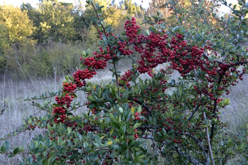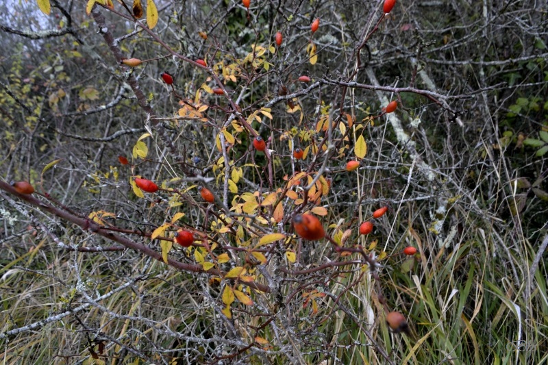 Dans les haies quelques gratte-cul au rouge flamboyant, et dans l’herbe une menthe encore givrée 😉 .