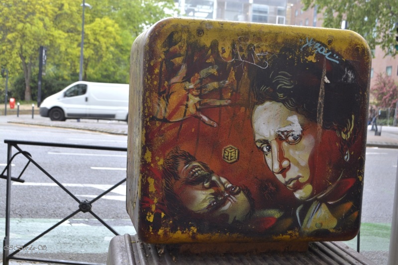 Tag éphémère sur ces panneaux posés contre les vitres d’une école supérieure, lors de la manifestation du 1er mai, histoire de les protéger des idiots dévastateurs…