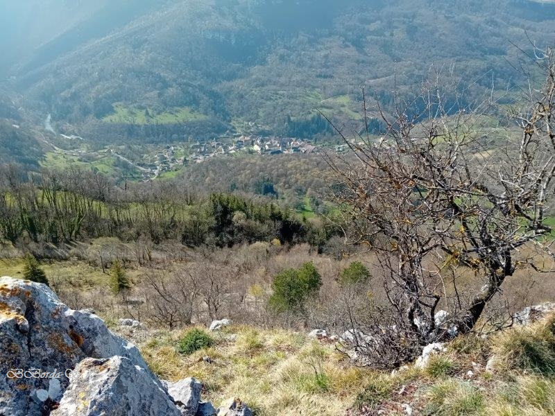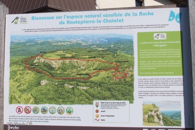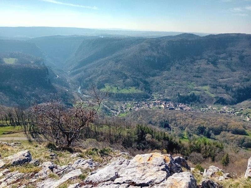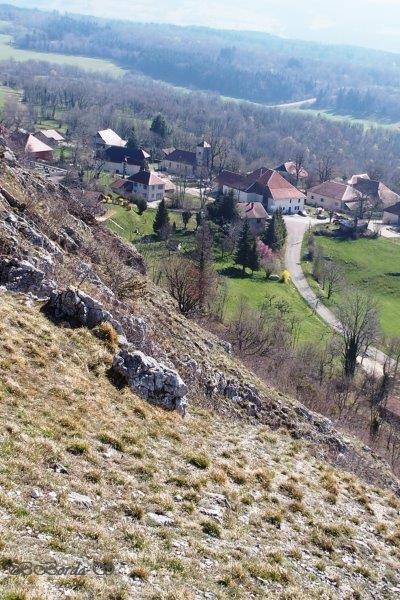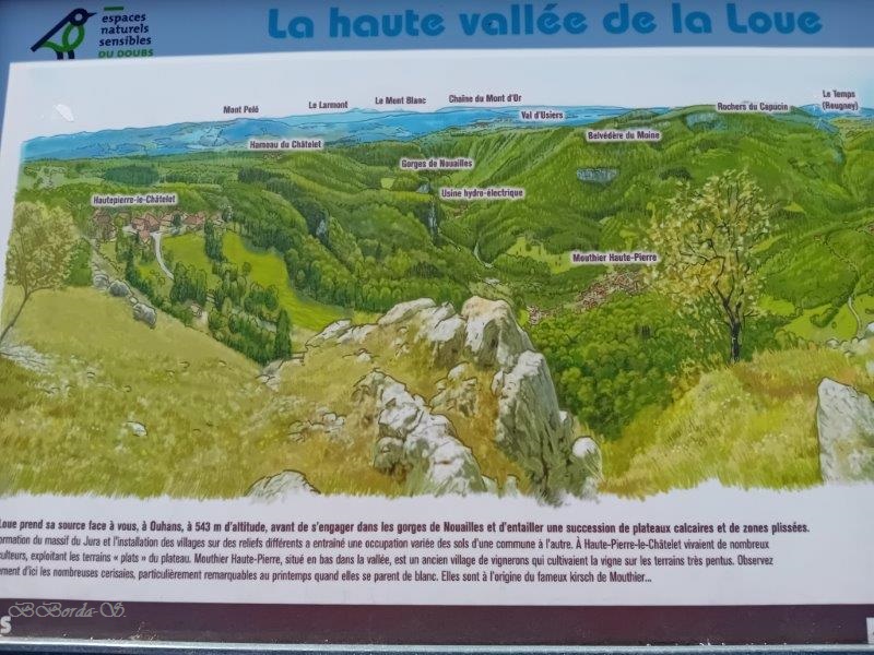 Un chemin bordé de violettes, une grimpette de 650m, et nous voici au-dessus le la vallée de la Loue et de Mouthier-Haute-Pierre