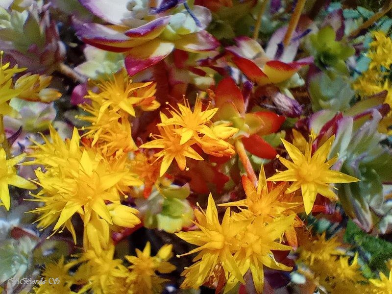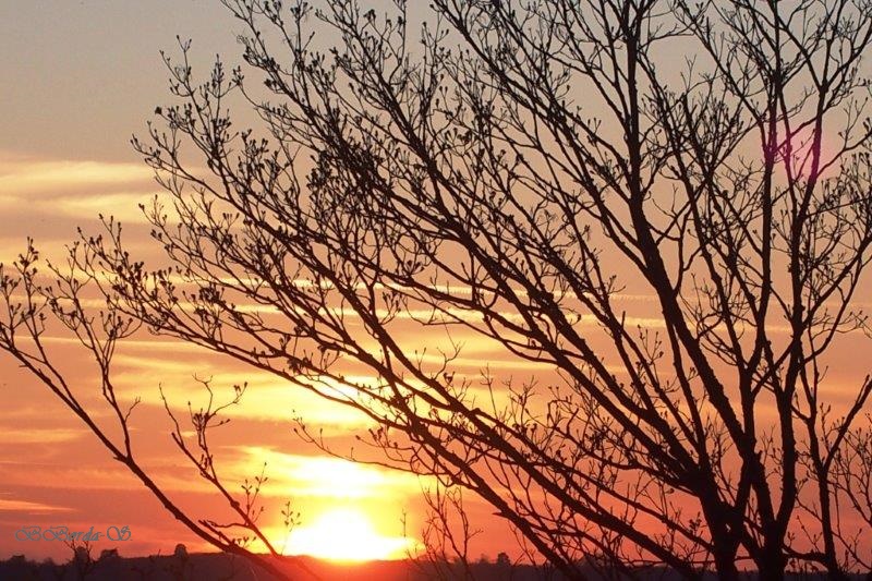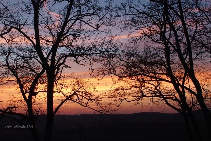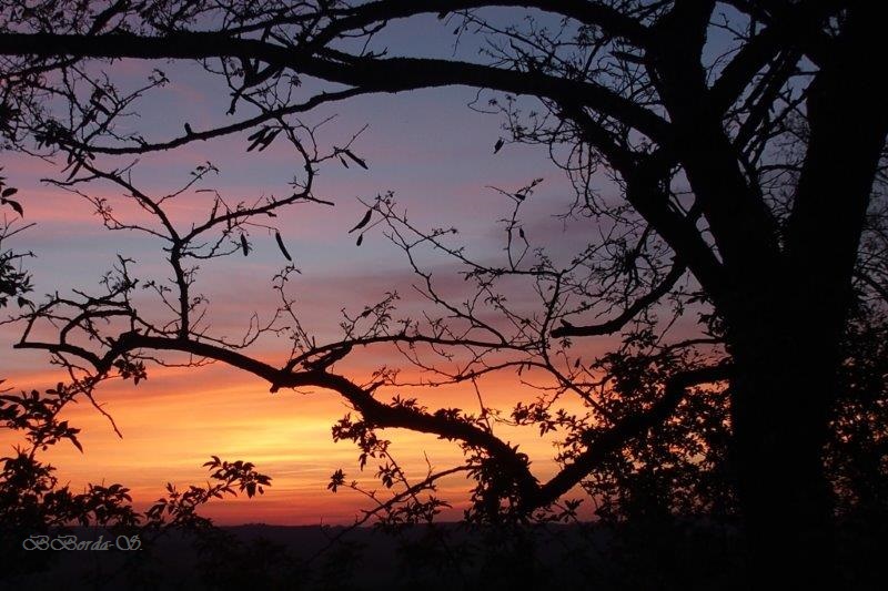De retour à Galembrun, le soleil nous attendait, feuillages tout neufs des acacias, joubarbe en plein épanouissement, et un beau coucher de soleil…