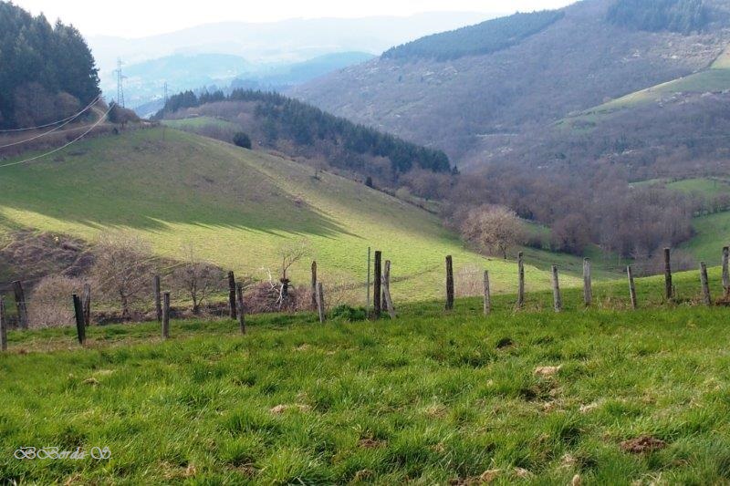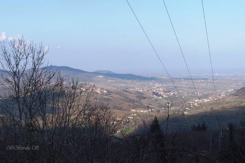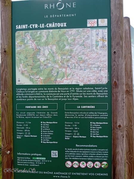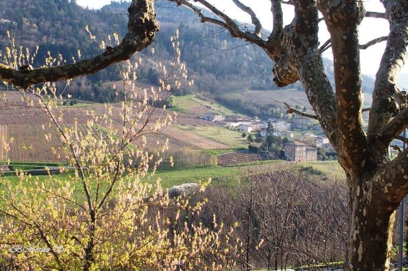 Avant de partir vers Clochemerle, tout de même, une courte balade dans le Beaujolais. Dommage pour les photos (lumière très contrastée sur les vallées), mais le petit village de Saint Cyr-le-Chatoux était bien joli, et les bois, monts, prairies qui l’entouraient aussi !