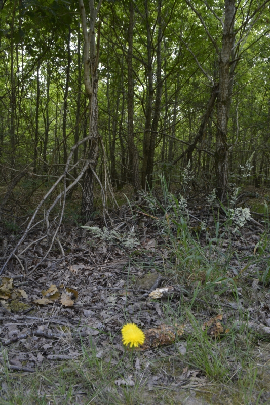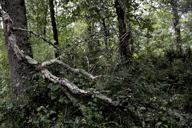 Et enfin, enfin, cette fois c’est bon ! Après un passage entre les brandes et quelques ronces, revoici la forêt et le chemin connu. Les « dragons » chers à mes fritouillettes ont été avalés par le temps, mais j’en ai trouvé un plus récent 😉 ! Bizarrement peu de chants d’oiseaux. Il faut dire que j’aurai fait cette balade avec en fond sonore les motos « vertes » qui tournaient dans les environs, mais heureusement pas dans le bois, du moins au moment où j’y étais.