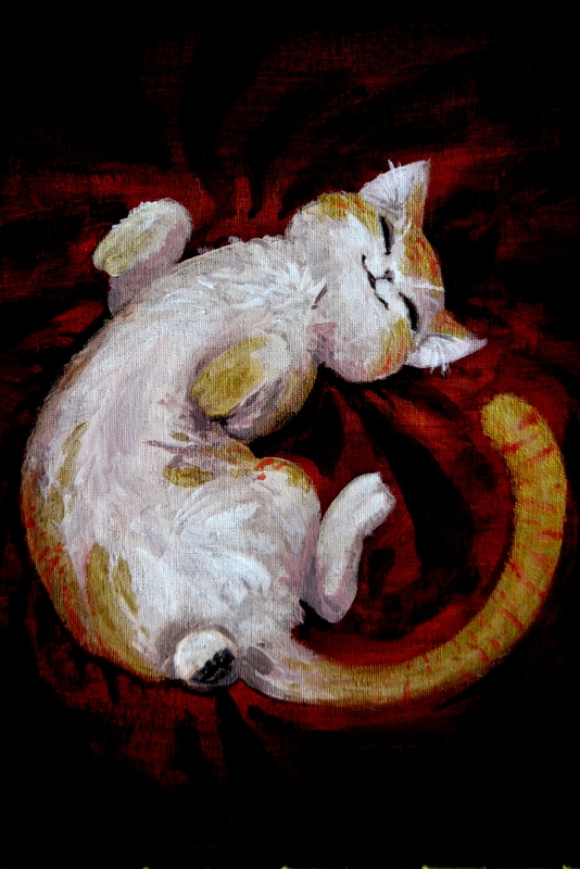 Il a fallu l’obstination d’Élisabeth pour que je me décide à la rejoindre, vers 9 heures, la pluie s’étant arrêtée. Tout était pourtant prêt dans la voiture depuis la veille, mais par crainte d’avoir à remballer en quatrième vitesse pratiquement tout est resté dans le coffre… Bon gré mal gré, nous avons récolté près de 30 euros… mais le soleil est resté au chaud, lui ! Et la grisaille semblait bien vouloir se réinstaller… les chattes en ont profité pour occuper chaises et canapé de longues heures…