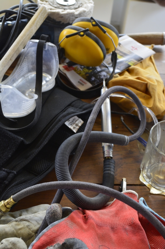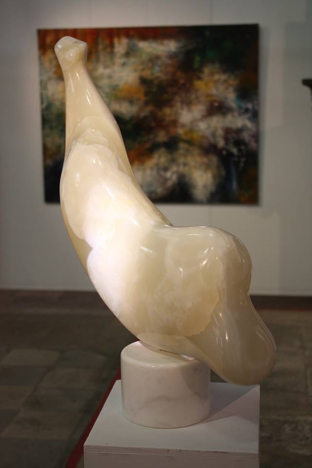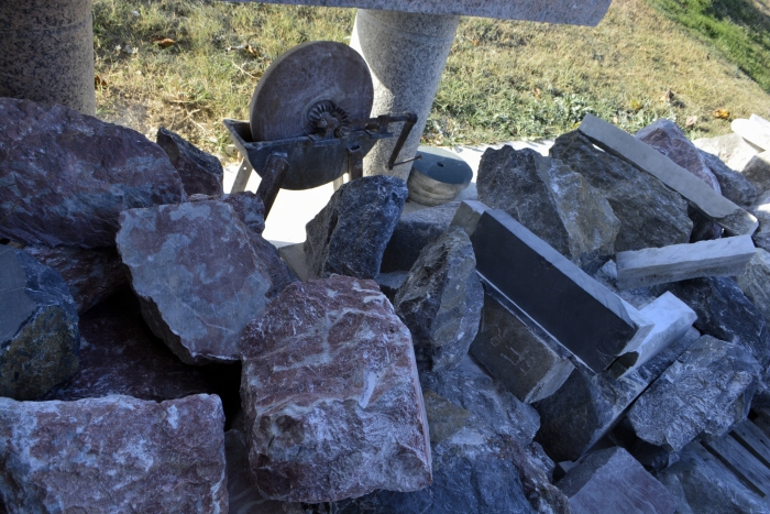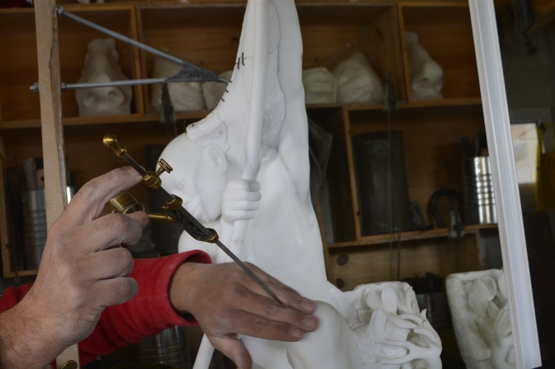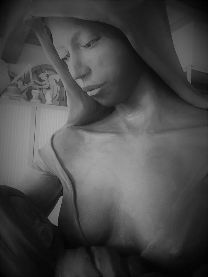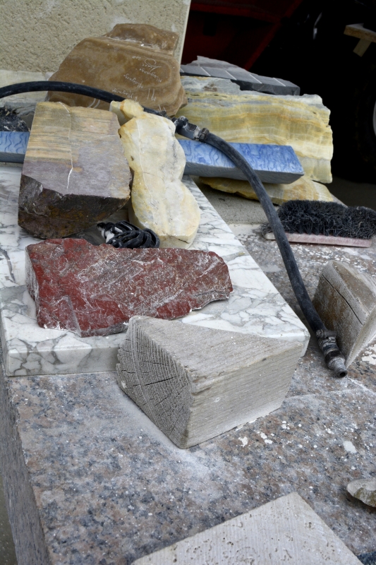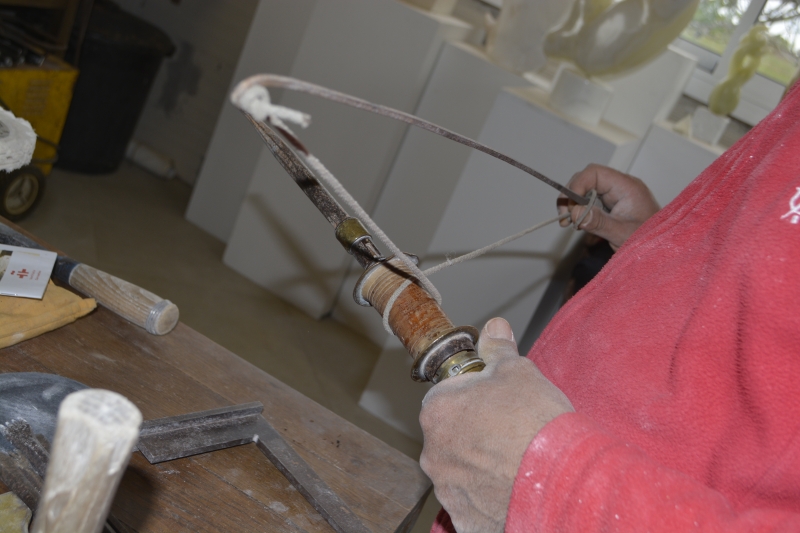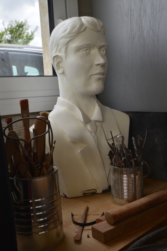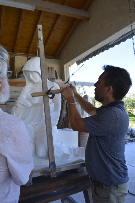 Ça, c’était le matin. En fin d’après-midi, au retour de la journée « les vieux guidons de la bastide » à Grenade, arrêt à l’atelier de sculpture de David Léger, ouvert dans le cadre de la journée « portes ouvertes des ateliers d’artistes d’Occitanie ». Je ne sais pas si beaucoup de personnes étaient au courant. Il faut dire que l’information culturelle ne semble pas non plus la priorité des médias depuis pas mal de temps… bref… Nous en avons profité pour aller voir David dans son atelier de Launac. Petit clin d’œil aux « vieux guidons de la Bastide », la très colorée vieille mobylette appuyée contre le mur 😉 . La Madone est encore en préparation, le bloc de marbre commandé s’étant fait attendre plus de 6 mois… et nous avons eu droit à une explication des mesures et de la façon de travailler d’un sculpteur actuel ! Des blocs de marbres de tous les tons vous attendent pour les stages que propose David Léger ( https://www.david-leger.com )….
