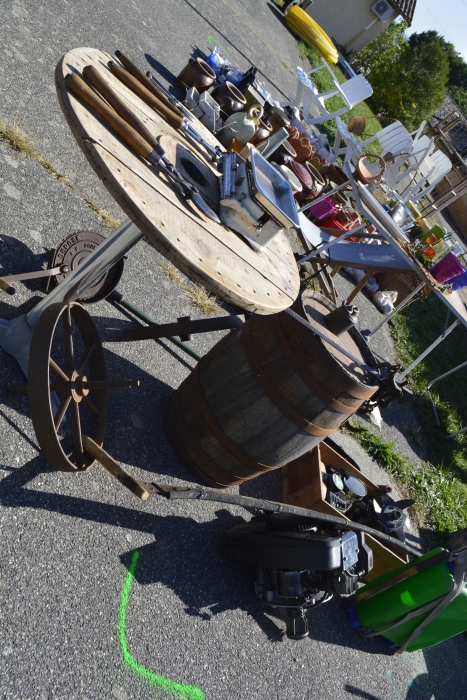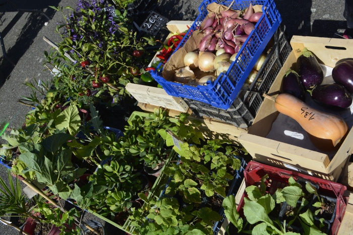 A Launac, ou plutôt à Galembrun, c’était vide-jardins. Organisé par le club de l’Aviron Launacais. Outils de jardinage, plantes diverses, fruits et légumes de saison, un rémouleur (à qui j’ai apporté mes ciseaux et mon vieux sécateur), « L’abeille Launacaise » et « Les chats d’oc » (association qui s’occupe de faire stériliser les chats errants, trouver des adoptants, etc).