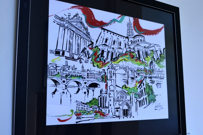 L’exposition ? Étonnante. Gaie. Beaucoup de couleurs sur les tableaux, éclatants. Des dessins sur Toulouse, des orages, la mer, les marchés. Une statue.