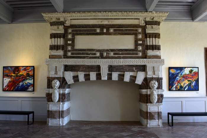 Dans la dernière salle, deux tableaux éclatants entourent l’imposante cheminée, sans que les lions semblent s’en trouver mal…