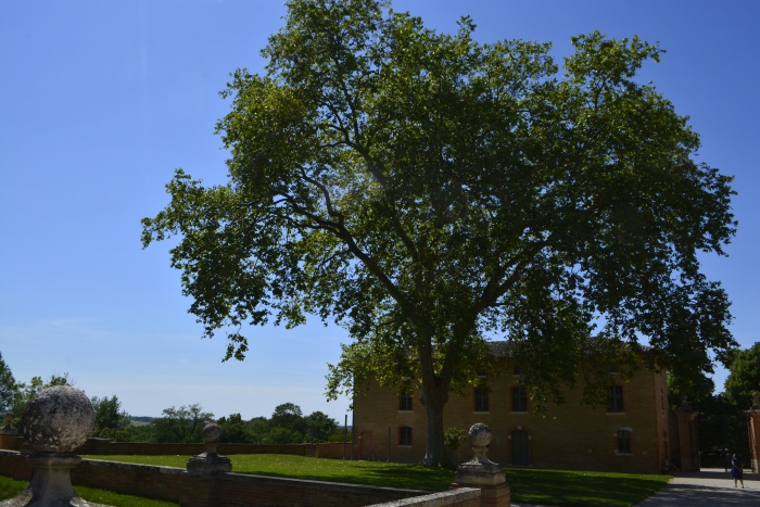 Je ne me lasse pas de ce château… J’y venais de temps en temps, quand les enfants étaient petits, alors qu’il était tout embroussaillé, mal – sinon pas du tout – entretenu, et les garçons s’y amusaient bien. Depuis, tout est bien lisse, bien ordonné, mais je prends toujours autant de plaisir à y venir. Portail, conciergerie, la cour avant le château, les communs, l’ancienne orangerie, et ce magnifique platane ancien (plusieurs centaines d’années dit-on).