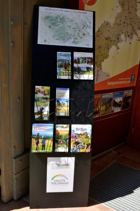 Petite halte à l’accueil, très souriant et sympathique. Juste devant l’entrée, un portant avec tous les documents sur notre région des Hauts Tolosans édités par l’Office de Tourisme, bien en évidence, permet de compléter la visite du château avec d’autres visites de lieux tout aussi intéressants de la région ( https://tourisme.hautstolosans.fr )