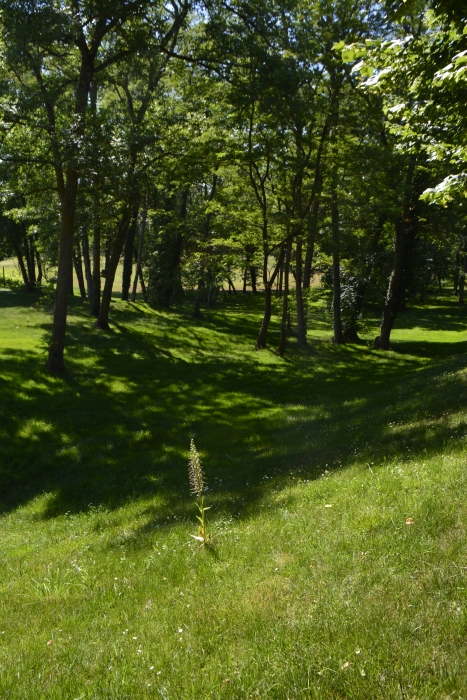 La visite terminée, nous repartons par les vergers, l’allée ombragée. Dans le petit bois, une orchidée sauvage pointe encore sa hampe. Une visite tranquille. La foule estivale n’est pas encore arrivée 😉 et nous en profitons pour bénéficier très égoïstement des trésors de notre petit pays avant tout le monde !