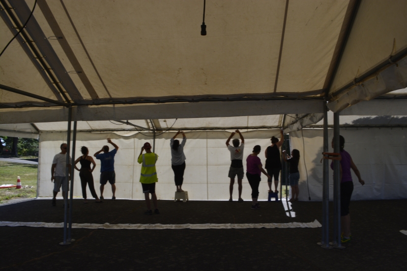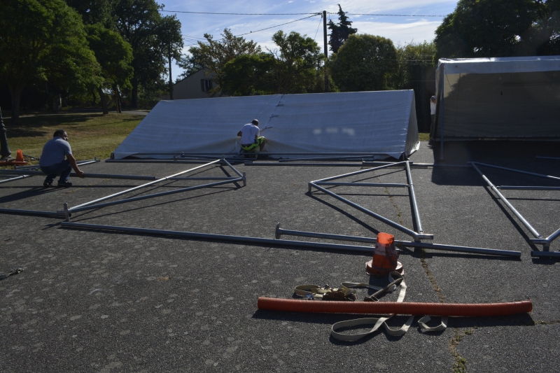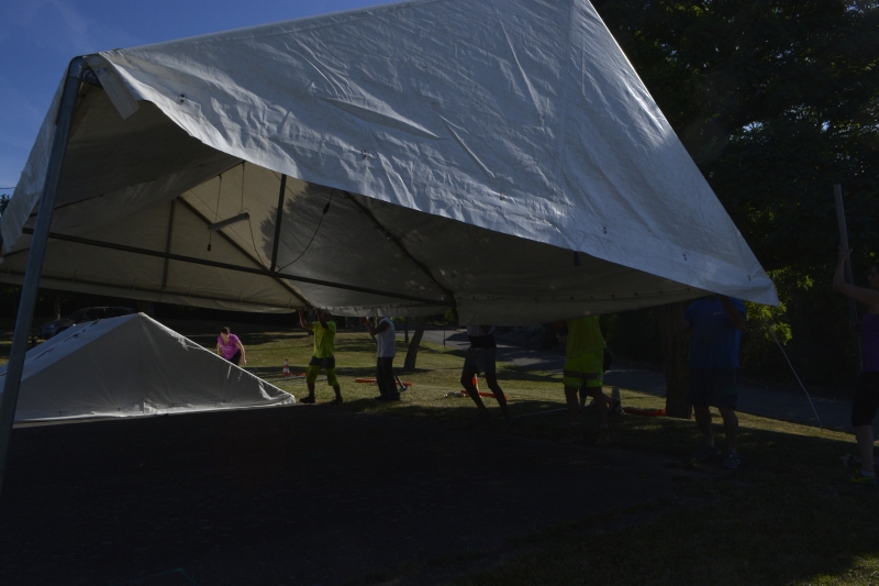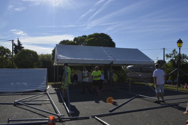 Les tentes ont été installées jeudi, avec l’équipe des employés municipaux et des bénévoles, dans la bonne humeur. Le podium devrait arriver jeudi ou vendredi.
